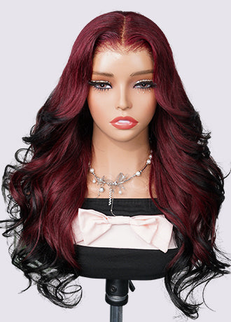 OQ HAIR Layered Body Wave Glueless Burgundy 99J To Black Ombre Color Pre-Cut 13x6 Lace Wear Go Glueless Wig With Flexible Fit Drawstring
