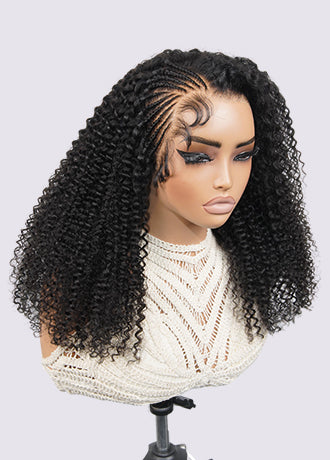OQ HIAR Side Braided Kinky Curly Glueless Natural Melt Pre-Cut 13x4 HD Lace Frontal Wig Snug Fit Drawstring Cap Bleached Knots Wear Go Wig With Baby Hair