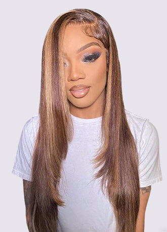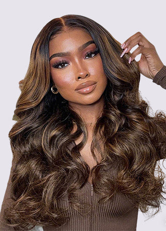 24h Ship Out | OQ HAIR Butterfly Pre-Styled Balayage Brown Color Layered Body Wave Adjustable Drawstring Wear Go Glueless Wig With Bleached Knots