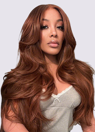 OQ HAIR Auburn Brown #33 Color Middle/Side C Part Body Wave Wig 7x5 Wear Go Glueless Wig Human Hair Wigs Beginner Friendly