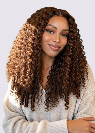 3 In 1 Half Wig | Burmese Curly Highlight 4/27 Color Wear Go Half Wig With Elastic Drawstring Flip Over Wig