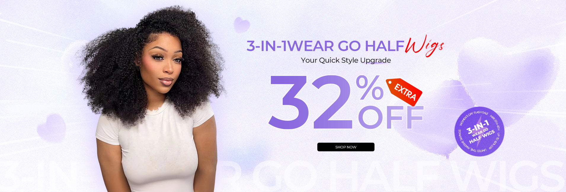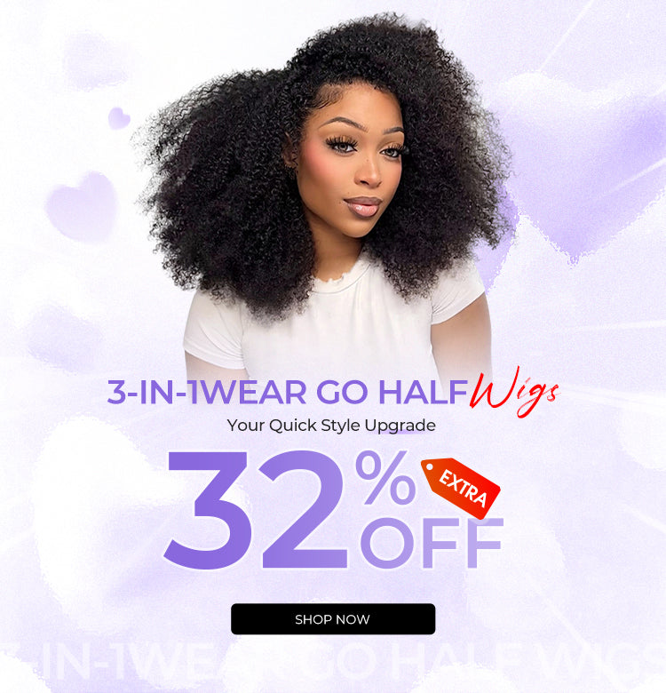 3 In 1 Half Wig | Burmese Curly Glueless Wear Go Half Wig With Elastic Drawstring Seamless Flip Over Wig