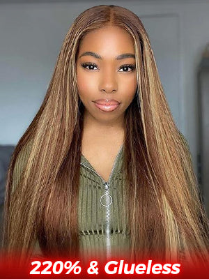 Flash Sale | Layered Straight Glueless Highlight Ombre 4/27 Color Wear Go Wig Pre-Cut 7x5 Lace$319.70 from $159.85 -