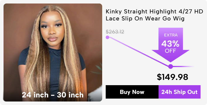 Flash Sale | Kinky Straight Hair Wear Go Glueless Wig Pre Cut 13x4 HD Lace$396.36 from $198.18