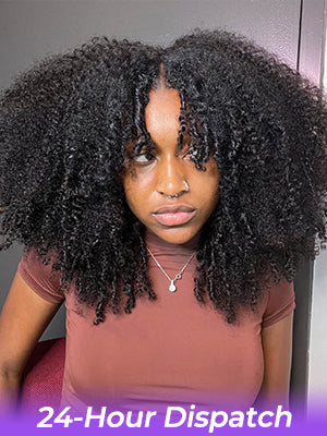Flash Sale | Afro Curly V Part Wig No Leave Out Thin Part Glueless Wigs Human Hair Wig