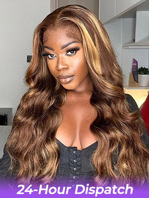 Flash Sale | Body Wave Hair 4/27 Highlight Ombre Color 7x5 Lace Closure Wig