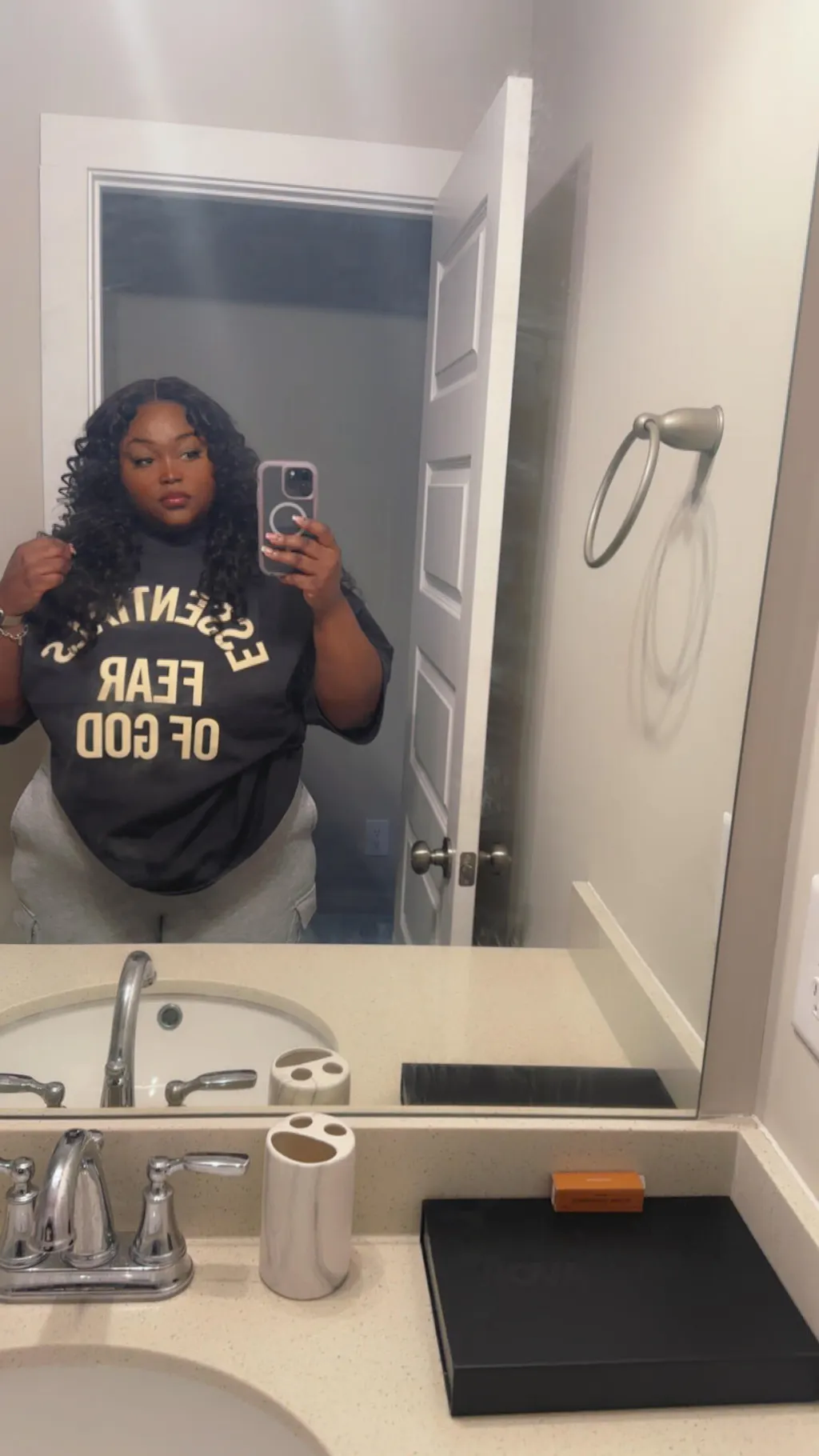 I get so many compliments on this wig! You can make it look wet and defined or big and puffy! It doesn’t need a lot of product to get your desired look. The lace is pre cut and the knots are bleached, which made it easy for me to put it on and just go!