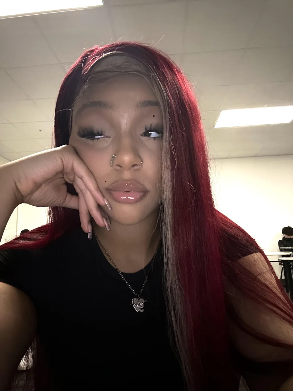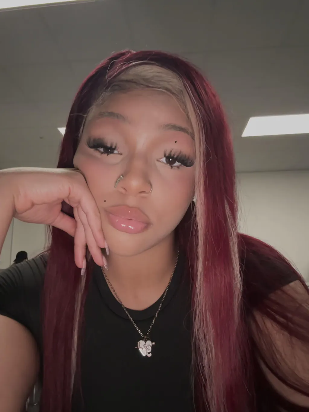 | Hair Color | Red Wine and Blonde Skunk Stripe Color Hair |