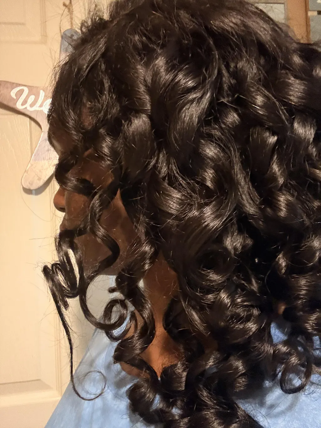 A7: While you're sitting at home, take it off and put it on a wig stand. The stand will help keep its shape and taking it off your head takes away from your own tugging and pulling hairs out.
